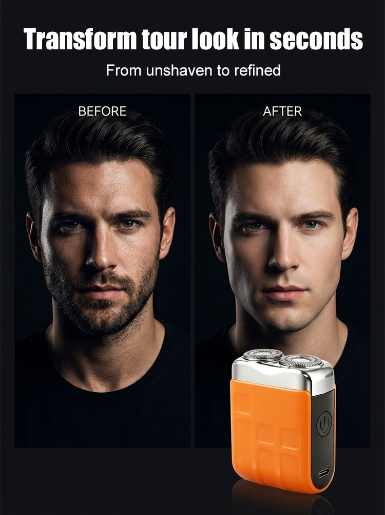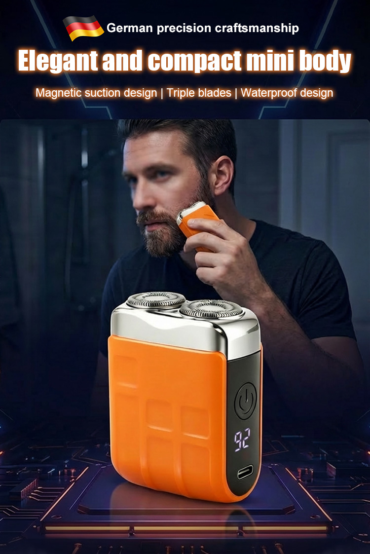 Stubbles on a business trip? Shave on the go! ✈️Tired of bulky shavers? This fits in your pocket! 🎒Magnetic cap design: Protects blades, stays clean! 🧲No more skin irritation with 3D floating heads! ✨USB charging for car, office, or international trips. 🔌Precision blades crafted from premium imported steel. 🔩Quiet motor, powerful shave. No morning noise! 🤫Perfect for car storage—stay sharp during commute! 🚗Waterproof design for a fresh and hygienic shave. 🚿