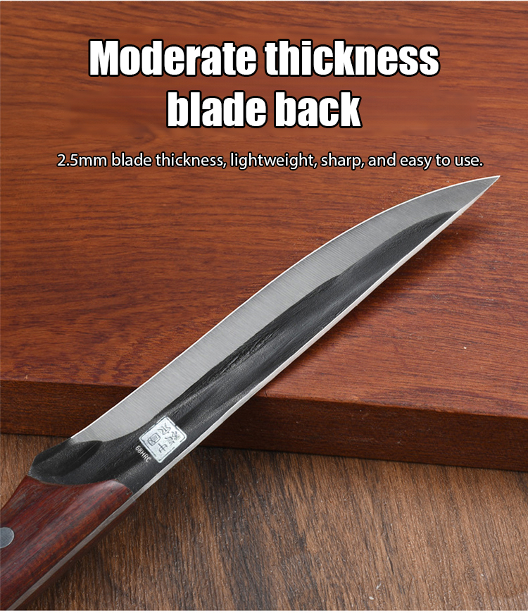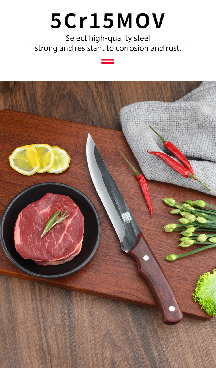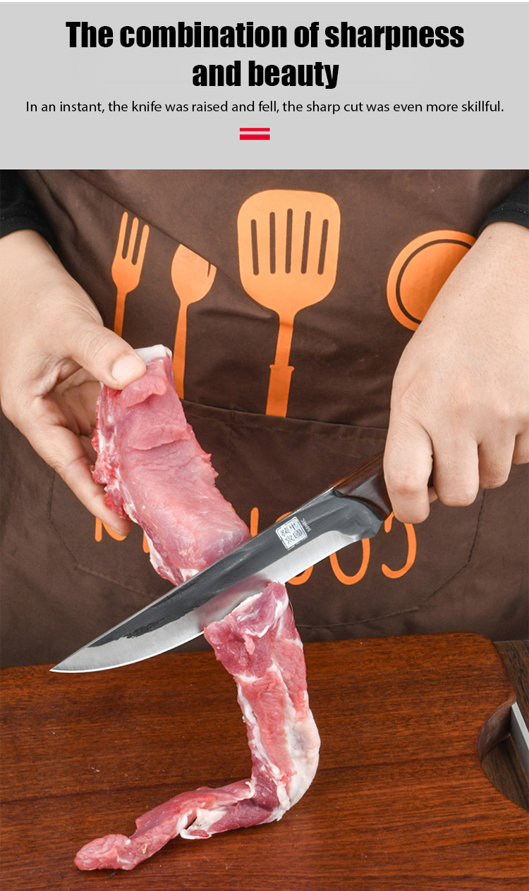 🗡️🗡️The high-hardness forged blade easily slices through lamb chops and steaks without cutting through tendons or getting stuck, making each cut a silent performance.🐂🐏Precisely debone and smoothly separate the meat, recreating the hearty way of eating on the grasslands at home.❤️The steel blade remains as good as new over time, while the warm, smooth mahogany grip provides a non-slip feel.