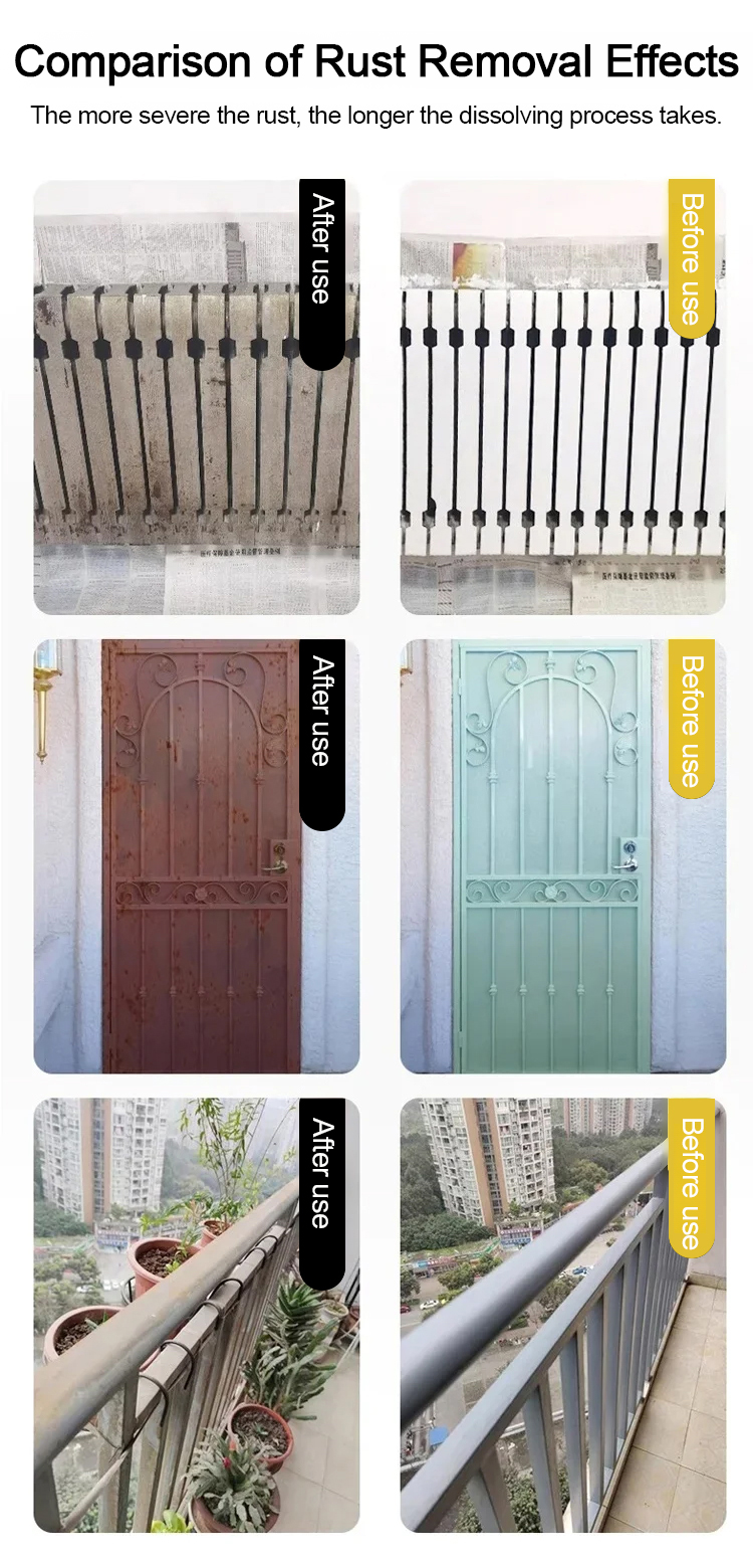 🛡️💎 Safe & Strong: Non-corrosive formula removes rust while preserving the original texture and strength of the metal.